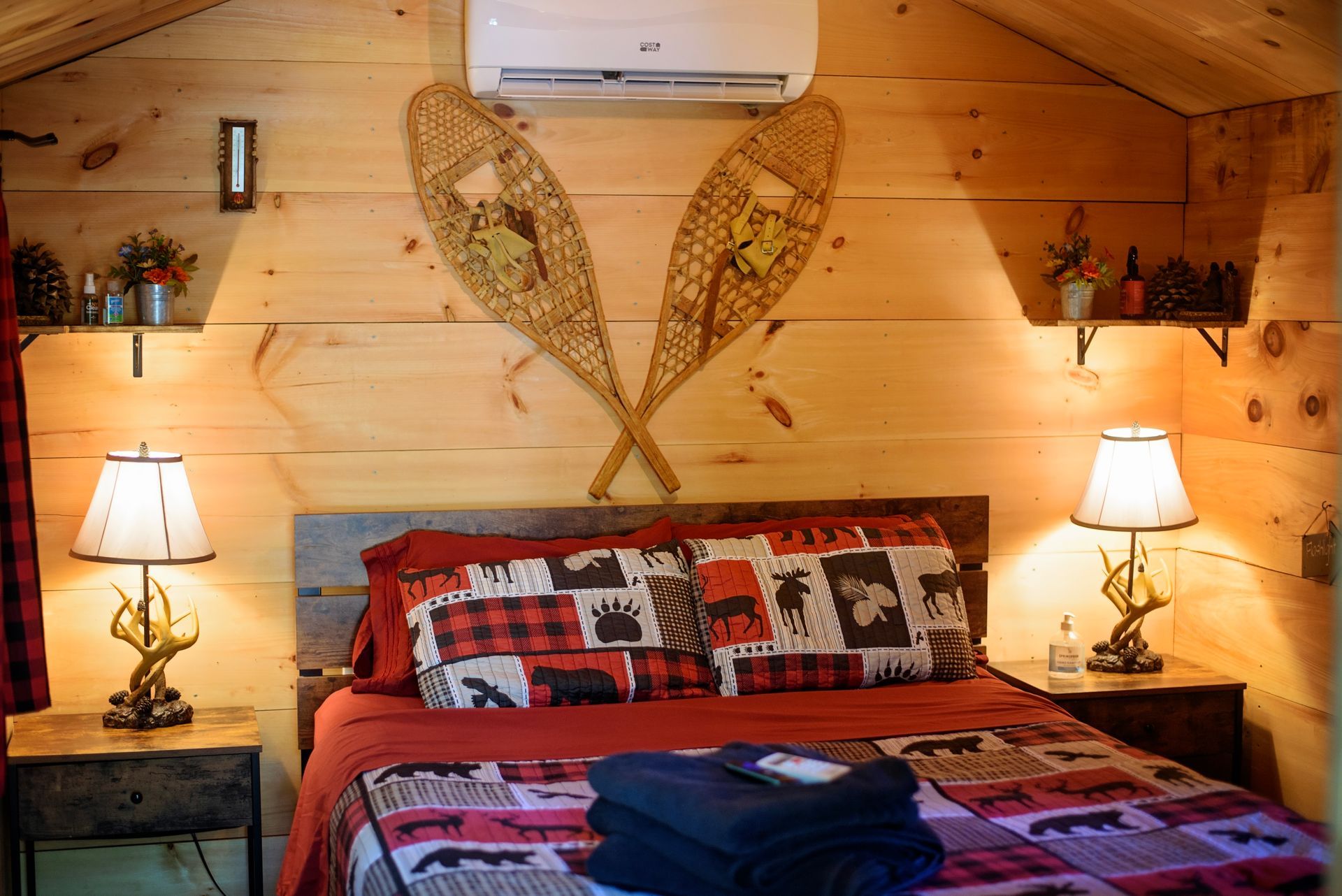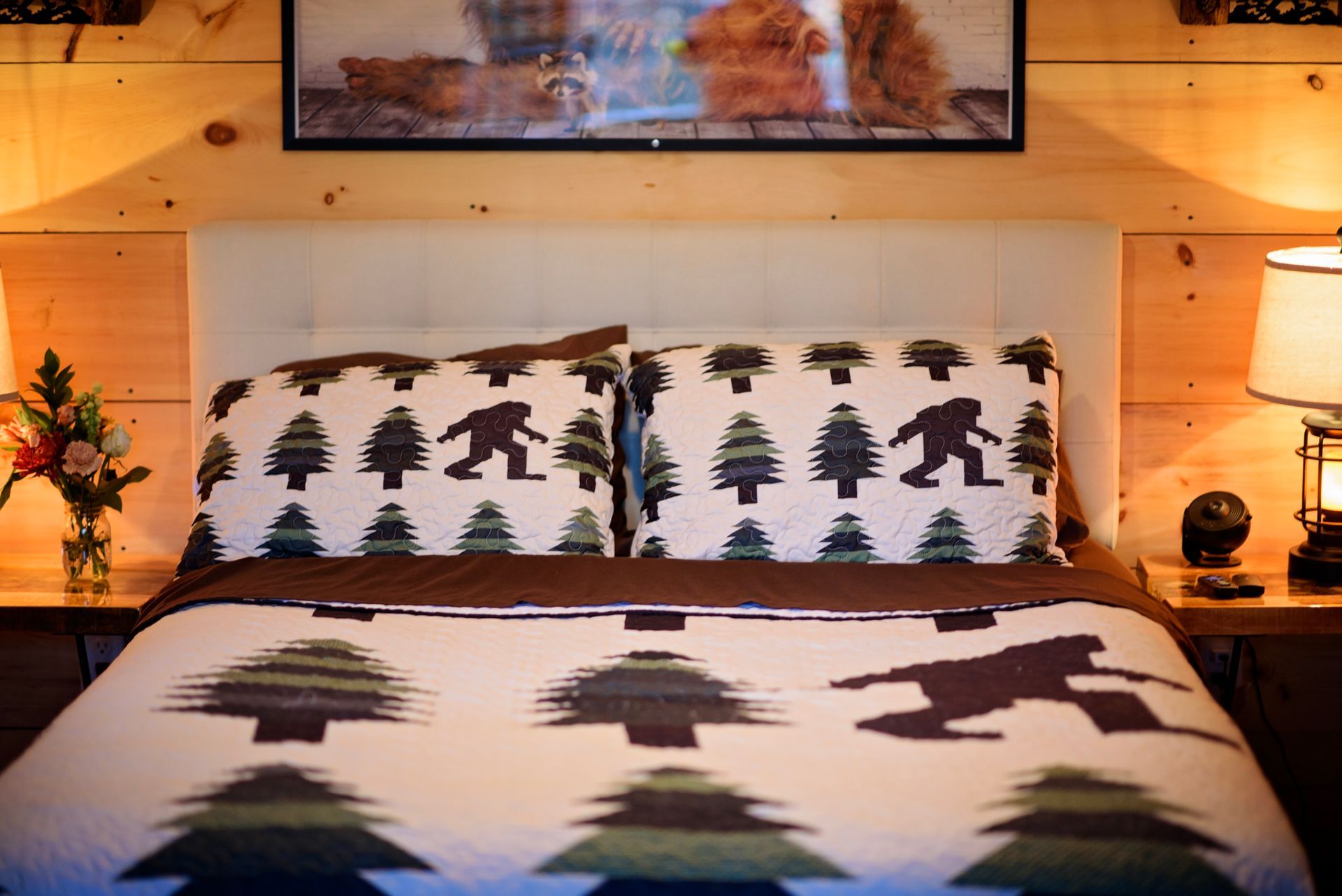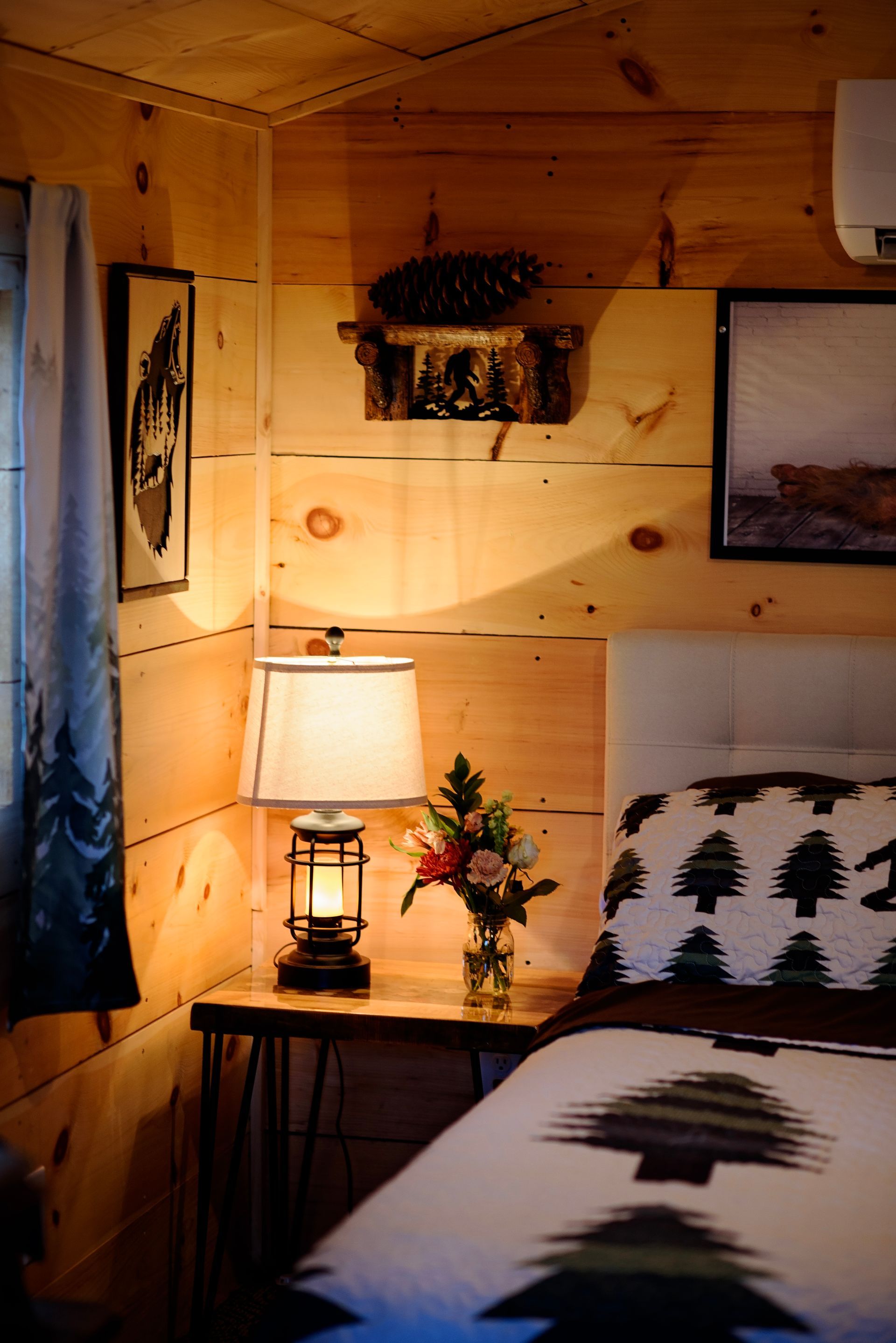 Tucked in the wilds of the Adirondacks, our Sasquatch Snug Cabin is a quirky, cozy short-term rental for Bigfoot enthusiasts and nature lovers alike! This rustic gem boasts Sasquatch flair with footprint wall art and a "Squatch Spotter" guestbook. Stay comfy year-round with heat and AC, brew a fresh pot with the coffee maker, zap snacks in the microwave, and chill drinks in the fridge. Crash in style on the queen-sized bed or sprawl out on the futon after a day of hiking. Outside, a fire pit and forest views beckon for s’mores and Sasquatch sightings. Book this fun hideaway for a wild Adirondack adventure!