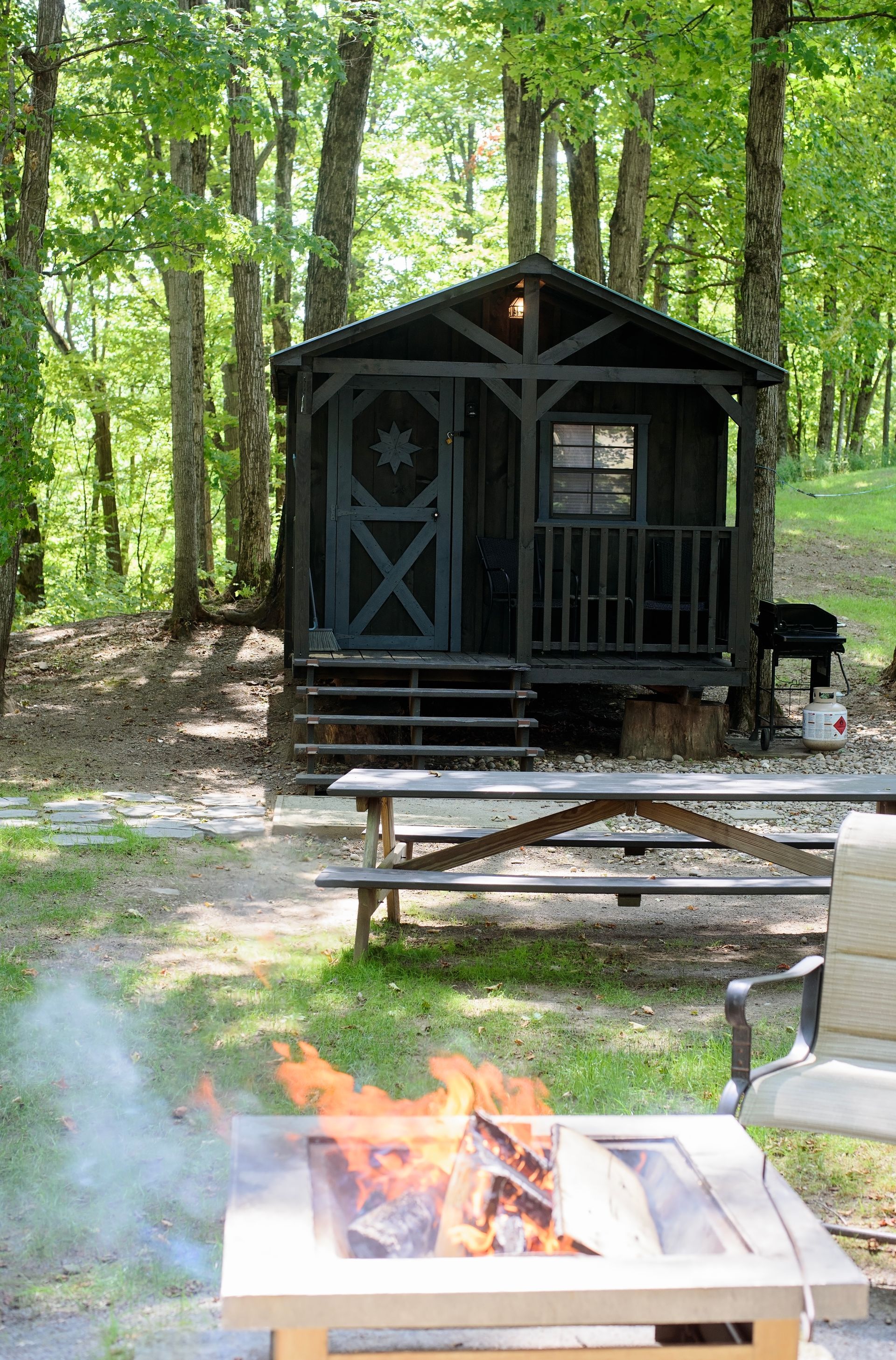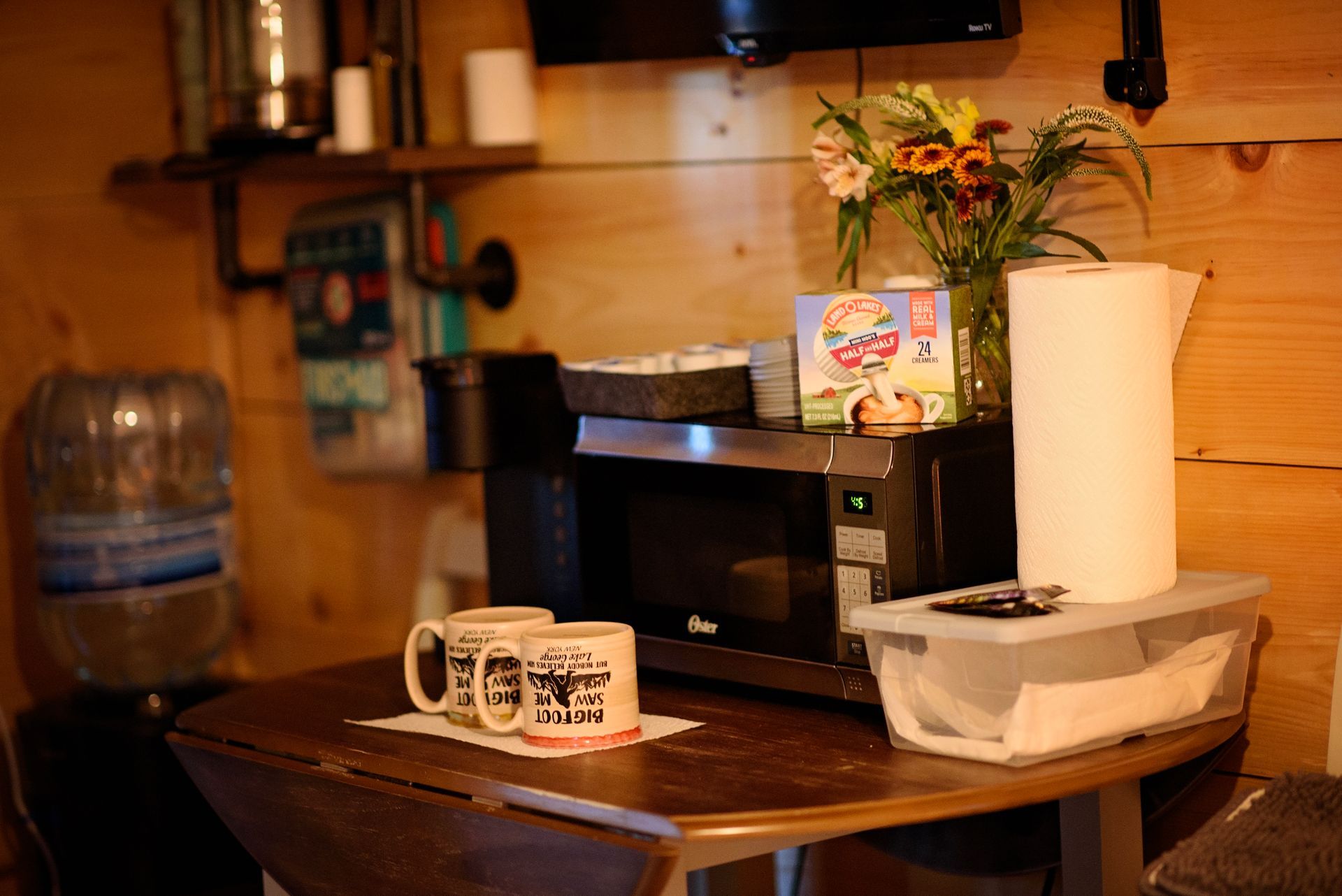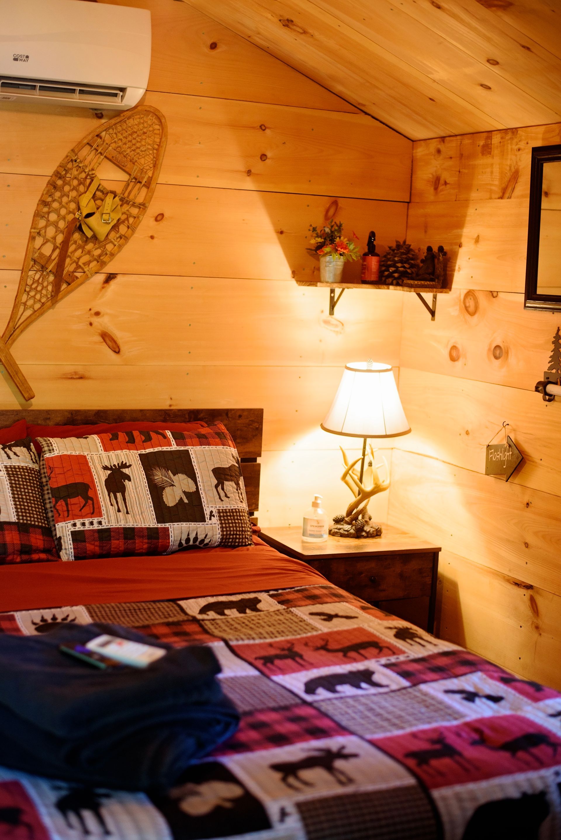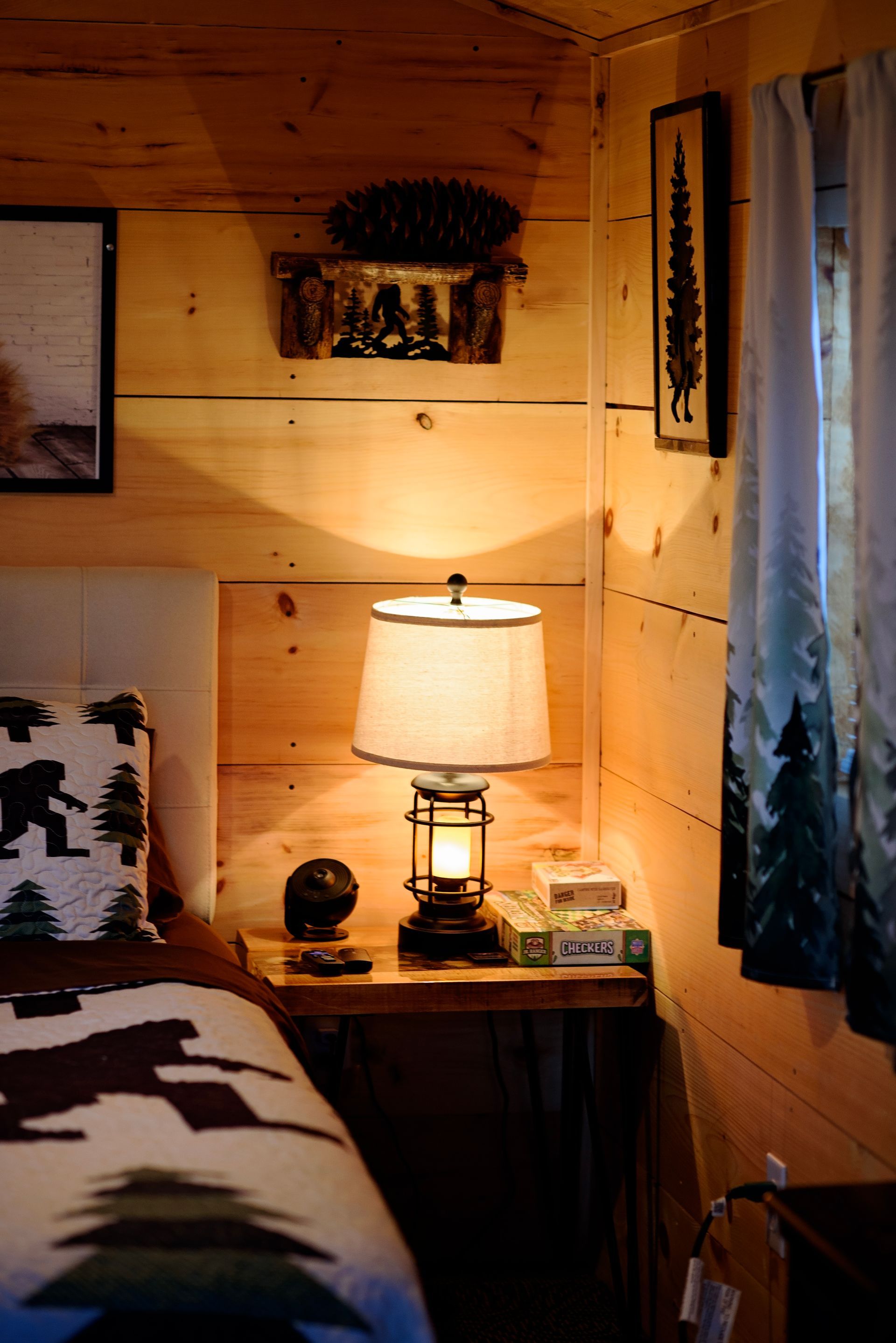 Tucked in the wilds of the Adirondacks, our Sasquatch Snug Cabin is a quirky, cozy short-term rental for Bigfoot enthusiasts and nature lovers alike! This rustic gem boasts Sasquatch flair with footprint wall art and a "Squatch Spotter" guestbook. Stay comfy year-round with heat and AC, brew a fresh pot with the coffee maker, zap snacks in the microwave, and chill drinks in the fridge. Crash in style on the queen-sized bed or sprawl out on the futon after a day of hiking. Outside, a fire pit and forest views beckon for s’mores and Sasquatch sightings. Book this fun hideaway for a wild Adirondack adventure!